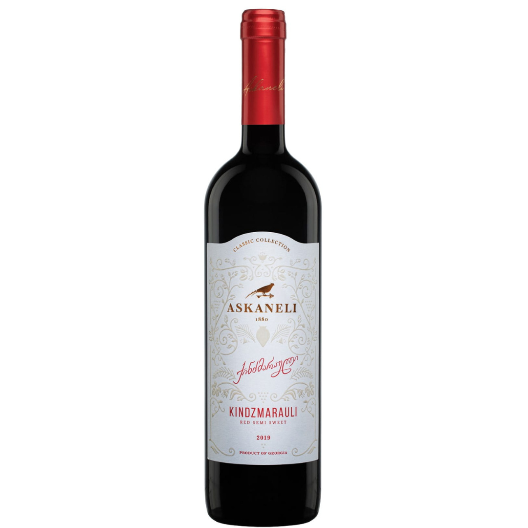 Askaneli Kindzmarauli Red Semi Sweet to półsłodkie czerwone wino z Gruzji, o intensywnym aromacie czarnych porzeczek i przypraw, idealne do deserów i serów.